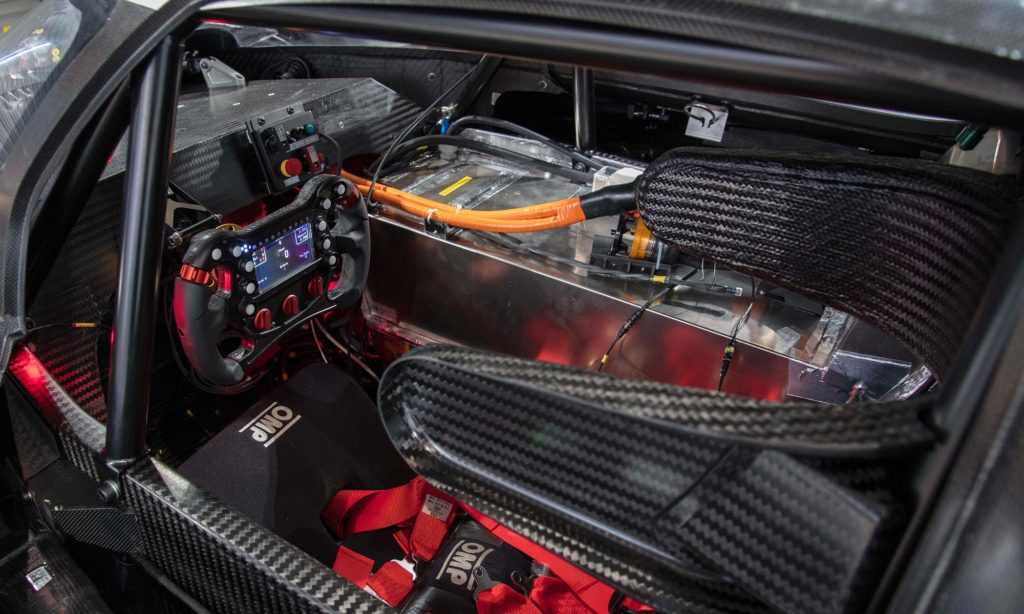 Az I.D. R Pikes Peak névre keresztelt torpedó két elektromotorja összesen 680 lóerős teljesítményre és 650 Nm nyomatékra képes, és figyelembe véve, hogy az egész autó mindössze 1100 kilogrammot nyom,