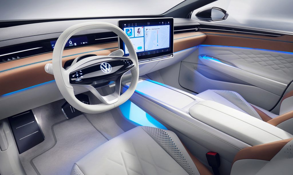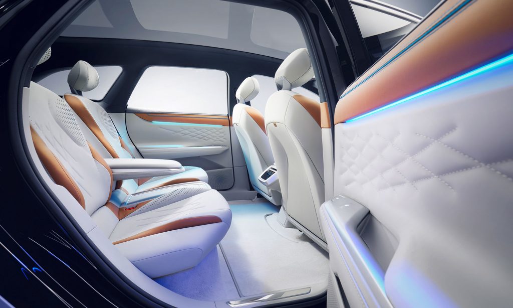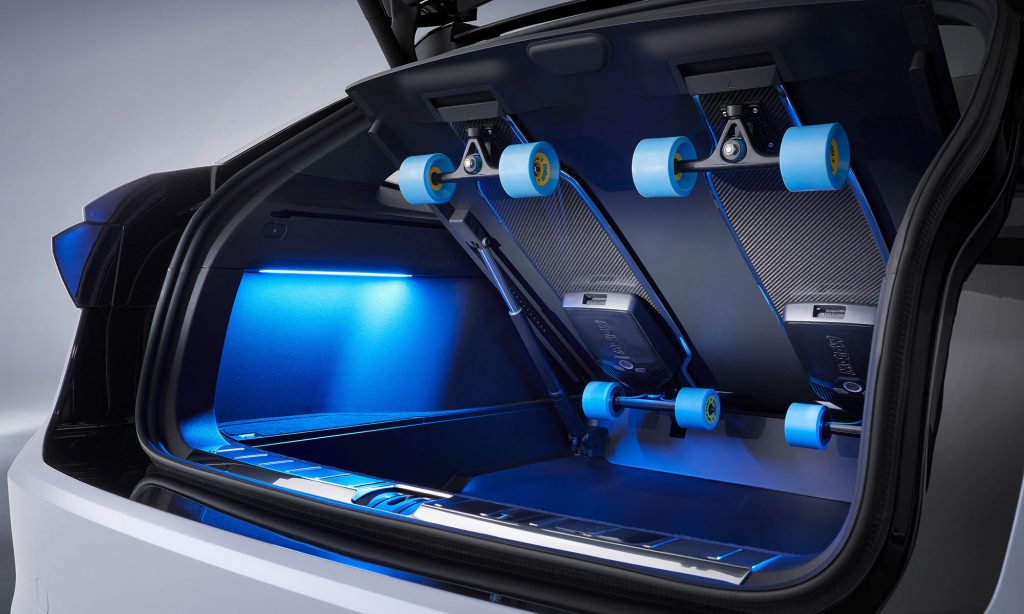 A végsebessége 175 km/óránál korlátozott, de egy ilyen utazóautónál úgyis inkább a hatótáv a lényeg. Az ID. Space Vizzion annyira áramvonalas, amennyire csak lehet, a Cw értéke 0,24, az orrán lévő nyílások tervezetten vezetik el a légáramot.
