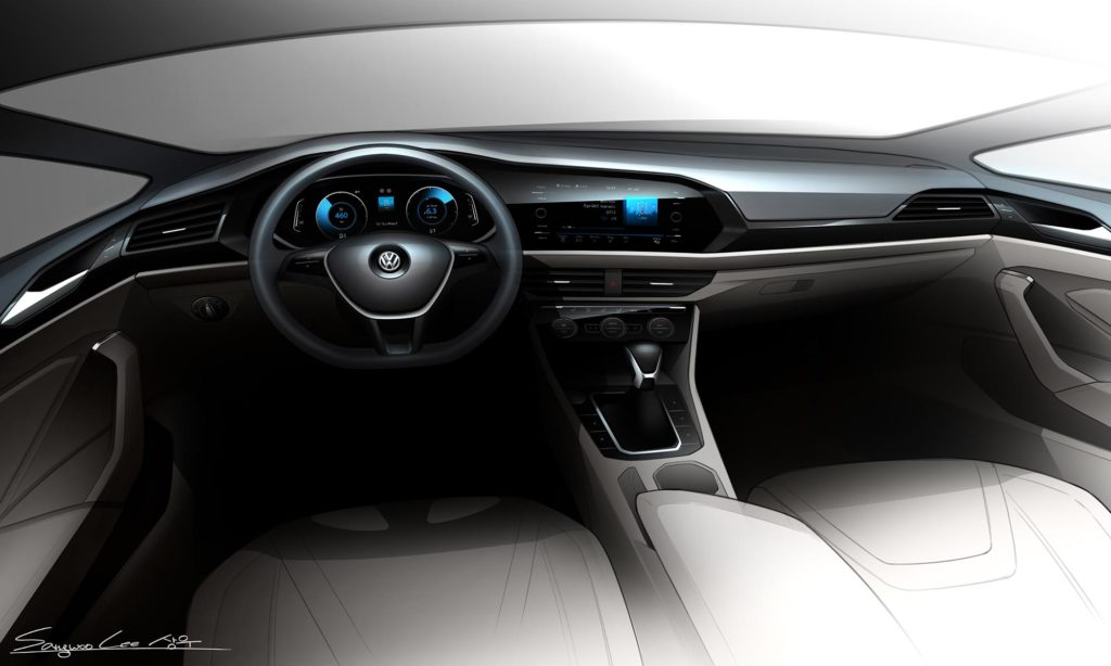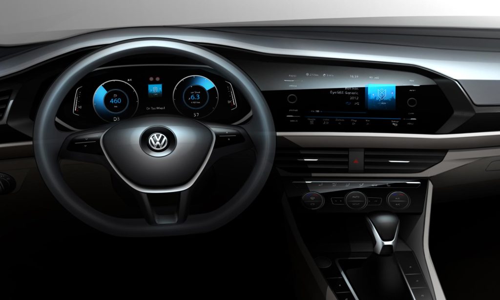 Már belülről is megmutatta a Volkswagen, hogy milyen lesz az új Jetta. Nem maradhat el a színes képernyővel helyettesített műszeregység, aminek a közvetlen szomszédságába kerül a nagy érintőképernyő, információból tehát nem lesz hiány, az biztos.