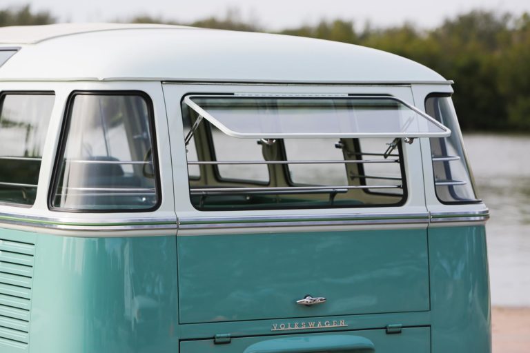 1963-ban gyártották, és új korában egyenesen San Franciscóba szállították ezt a Volkswagen mikrobuszt, ami az eddigi életét végig a kaliforniai partvidéken töltötte. Még érdekesebb, hogy ez a 23 ablakos kisbusz a szafari-kivitel, ahol az első és hátsó szélvédő külön is nyitható.