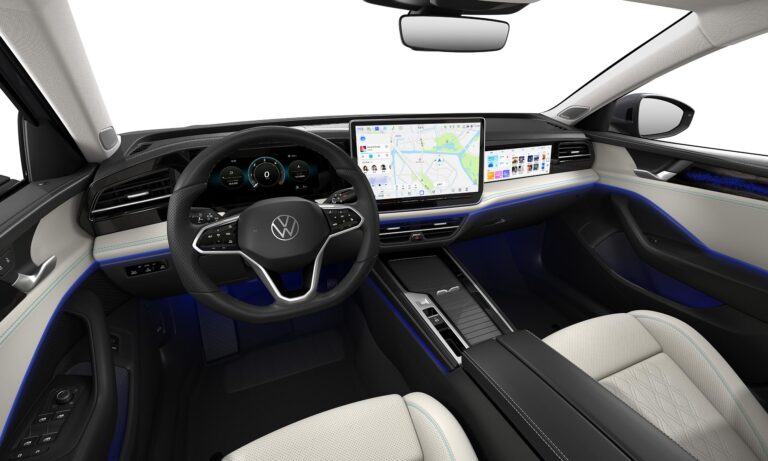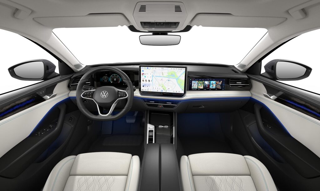 Az új Magotan belső tere az európai Passatból lehet ismerős, az érintőképernyős kormánykerék mögött kijelző vetíti a műszereket, a váltókar a kormányoszlopra került, középre pedig a 15 colos érintőképernyőt tették. A kínai modellben azonban még egy plusz képernyő található, ahol nálunk hangulatfénnyel megvilágított díszbetét van, ott