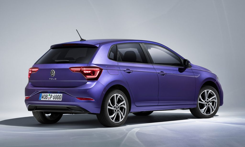 A megújult és már szériában LED-es fényszóró nappali menetfénye a hűtőmaszkon is folytatódik, és hátul is szélesebbek lettek a lámpák, amivel szintén a Golfra emlékeztet a Polo. A kínálatba új színek is érkeztek, és a képeken látható lila elég merész.