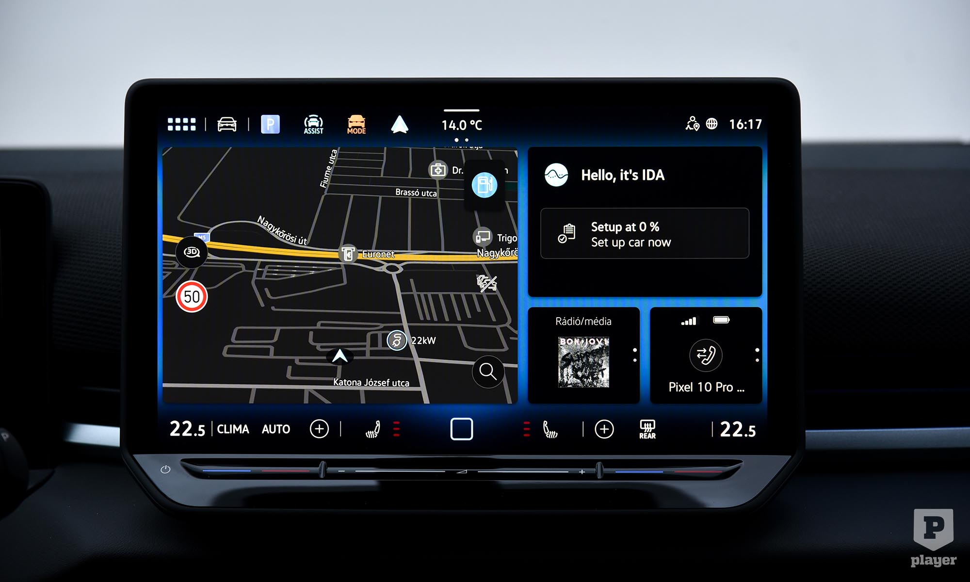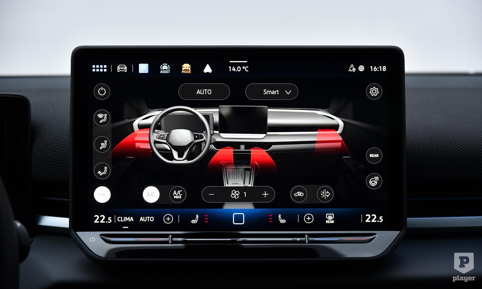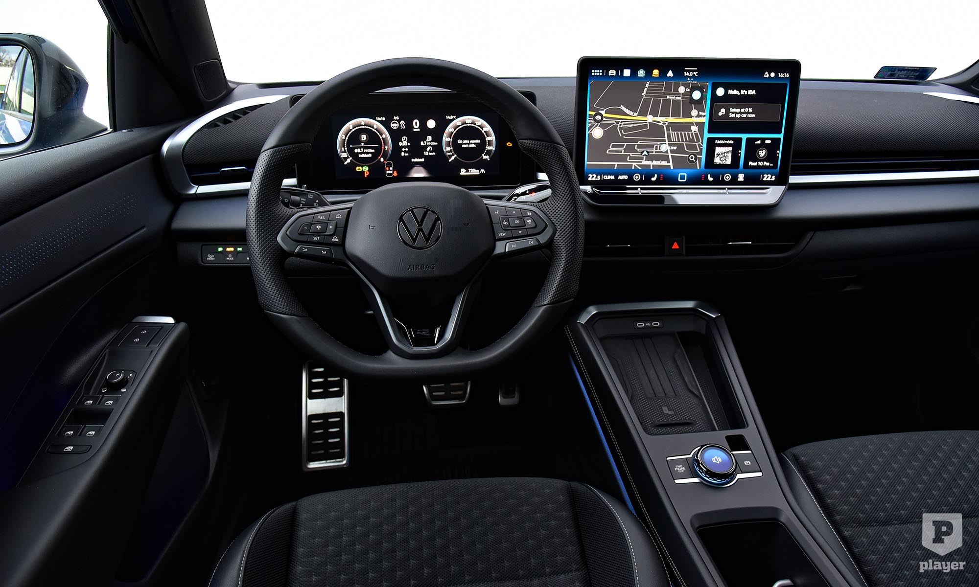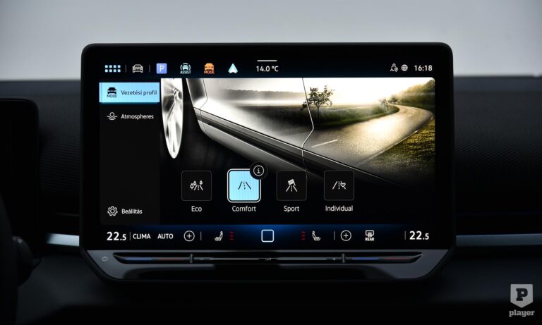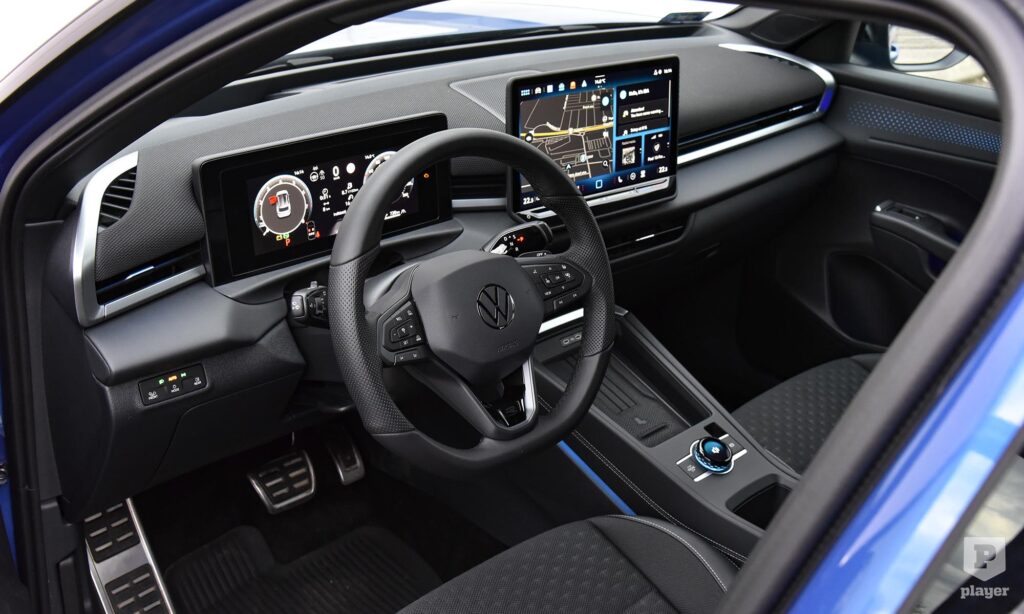 Szinte mindent kicseréltek a belső térben, ahol a leglátványosabb változás a minden modellhez alapáron járó 12,9 colos érintőképernyő, friss grafikájával és gyors működésével szinte az okostelefonok felhasználói élményét adja. A műszerfal felső részét újrahasznosított textil borítja, ami szokatlan a kategóriában, és bár vannak kemény műanyagok, ezt hatásosan ellensúlyozzák a rafinált hangulatvilágítással. A csupa fekete belső tér komorságát oldják az autóban elrejtett apró grafikák, például a telefon vezeték nélküli töltőpadja egy úszómedencét mintáz. A Volkswagennél szerencsére tanultak a kritikából, a kormánykerékre visszatértek a hagyományos gombok, és a klíma kezelőfelülete is mindig látható a központi képernyő alján.