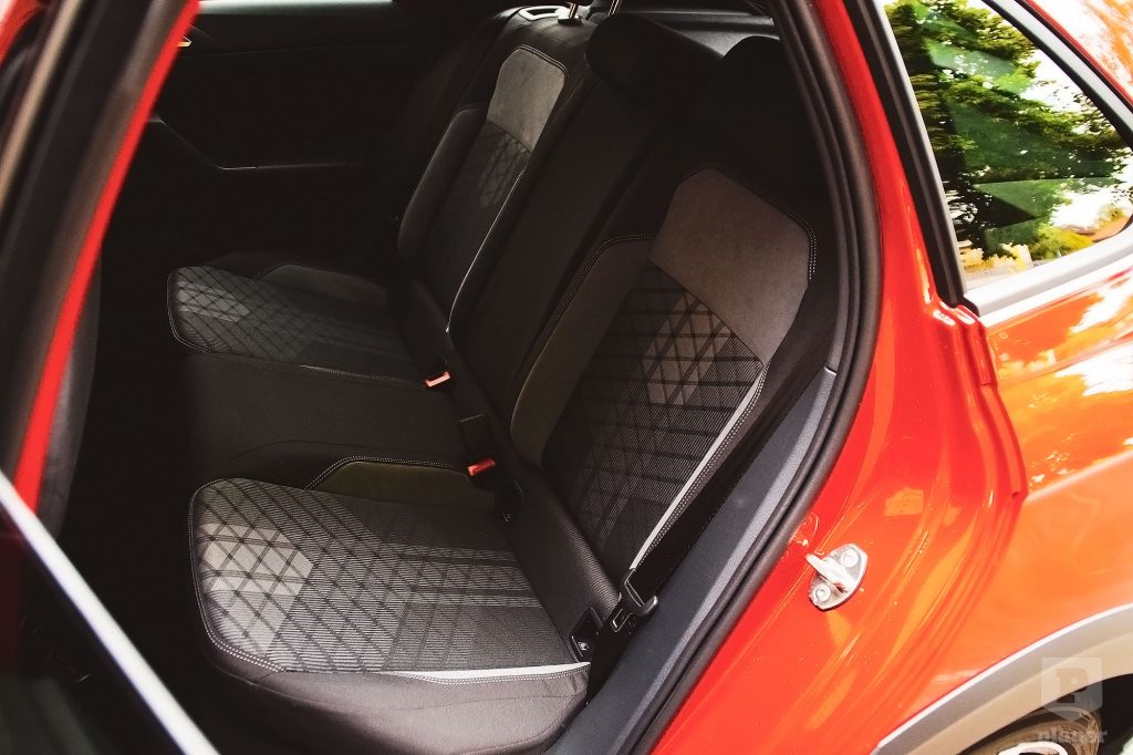 Aki hátra került, kevésbé élvezte a hosszú autózást. A lesötétített, keskeny hátsó oldalablakok közé zárva, saját szellőzők, asztalkák, középső könyöklő, egyáltalán: bármiféle családbarát kényelmi holmi nélkül kicsit tömlöcbe zárva, büntiben éreztük itt magunkat. Főleg, hogy még nagyon frissen él bennünk egy másik Volkswagen, a mesésen tágas Multivan csodálatos guruló nappalija. No de hát a Taigo nem egy Multivan. Akkor se lenne az, ha lenne tetőablaka, ami a tesztautónak nem volt, pedig biztosan feldobta volna kicsit a hátul kuksolók hangulatát.