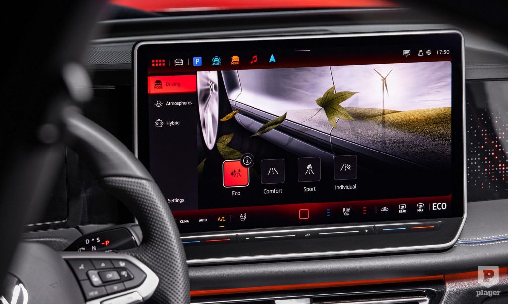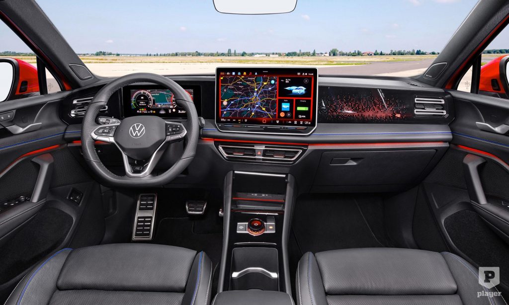 A vezető környezete ismerős lehet az új Passatból, de azért nem egy az egyben került át a műszerfal a Tiguanba. A számlapokat színes képernyő vetíti, a középkonzol tetejére pedig alapból 12,9 colos, felárért akár 15 colos érintőképernyő került, a klímaberendezést is innen kell kezelni. A Volkswagen többé nem kínál manuális váltós Tiguant, az irányváltó ezért a kormányoszlopra költözött, az ülések közé egy multifunkciós forgókapcsolót tettek.
