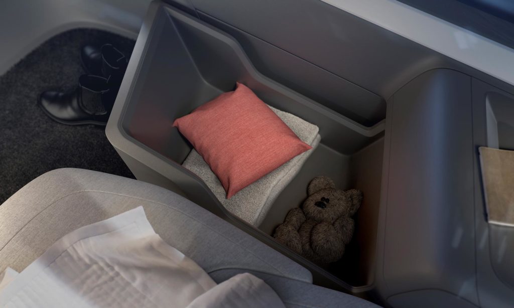 Még érdekesebb a pihenőmód, amikor akár fekvő helyzetbe is dönthetők az ülések, a képek alapján a 360c utastere a repülőgépek első osztályú fülkéivel is felveszi a versenyt. Nem lenne Volvo a Volvo, ha nem talált volna ki egy biztonsági újítást hozzá: ha éppen fekve utazunk az önvezető autóban, akkor a takaróként használt pléd képes arra, hogy biztonsági övként funkcionálva védjen meg minket egy balesetben.