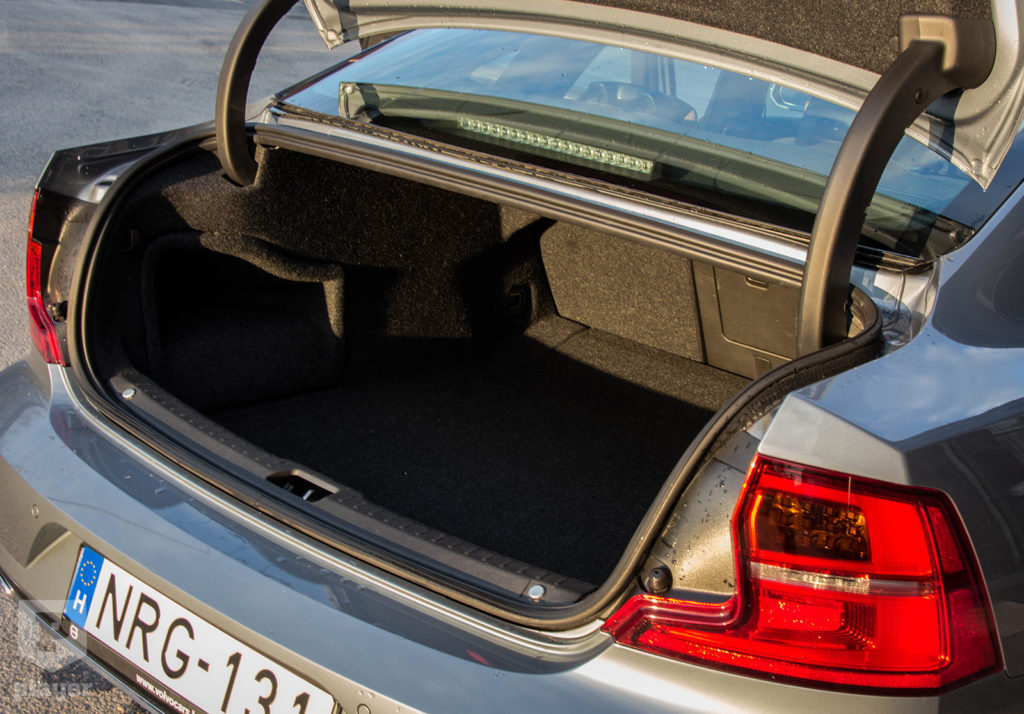 A futómű hagy kívánnivalót maga után, a nagyszedánokhoz képest nagyon puha, továbbra is hordozza a korábbi Volvók “betegségeit”: hullámzik, billeg, mint egy közepes méretű vitorlás. Ez nyilván nem az autópályán jön majd elő elsősorban, hanem inkább mondjuk Észak-Olaszország tébolyító szerpentinjein, de az autó leendő gazdái valószínűleg inkább nagyvárosok között rendszeresen utazó felsővezetők lesznek, akik napi 5-700 kilométereket taposnak majd ebbe páratlan szépségű hajóba. Nem a szerpentinek királya lesz az autó, a fordulóköre sem a legkisebb, de azért nem hoz zavarba egy normális méretű parkolóház. Egy szűkebb parkolási-alagútrendszerben azért gondban lennénk. A csomagtér a maga 500 literes méretével átlagos és teljesen korrekt, mégis itt lesz az autó egyik (szubjektív) gyengepontja, de erre mindjárt kitérünk Gáspárral. Nagyjából ennyi negatívumot tudunk felsorolni, itt azért már kezdhetjük sejteni, hogy rendben leszünk.