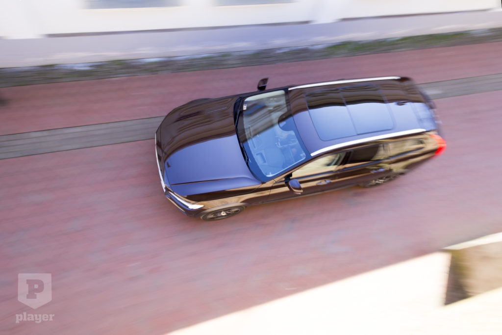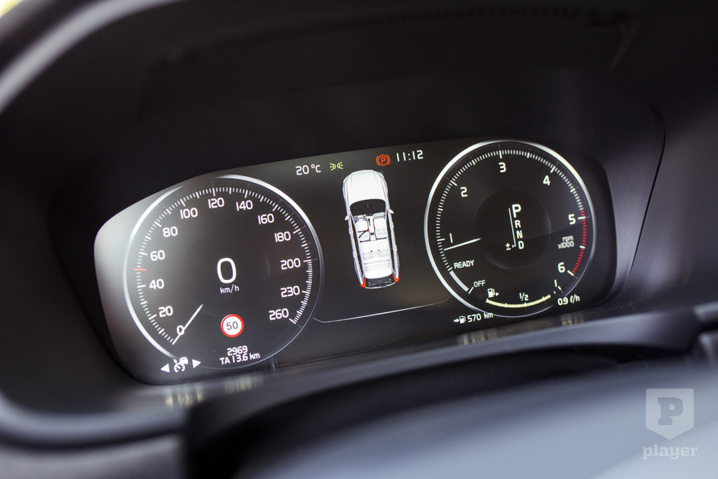 Talán ez, a kétség keltése lehetett az ördögi terve a svéd tervezőknek és azt hiszem, megugrották. Az adaptív tempomat működése gyakorlatilag lemodellezi az előttünk haladó közlekedőtárs mozgását, a megjelölt követési távolságnak megfelelően rátapad és precíz kötelékben halad vele, miközben pihenteted a lábad. A körúton persze megvicceli a rendszert a sávodba beeső pizzafutár, ilyenkor a rendszer azonnal lefékez, hogy felvegye a meghatározott követési távolságot, immár a robogós kollégát követve, de egy autópályán, ahol a felfestések is stimmelnek (nappal, száraz úton próbáltuk), a sávtartás agresszívebb formájával még a kormányzást is intézi az ember helyett. Ez meglehetősen bizarr élmény, még így, 2017-ben is.