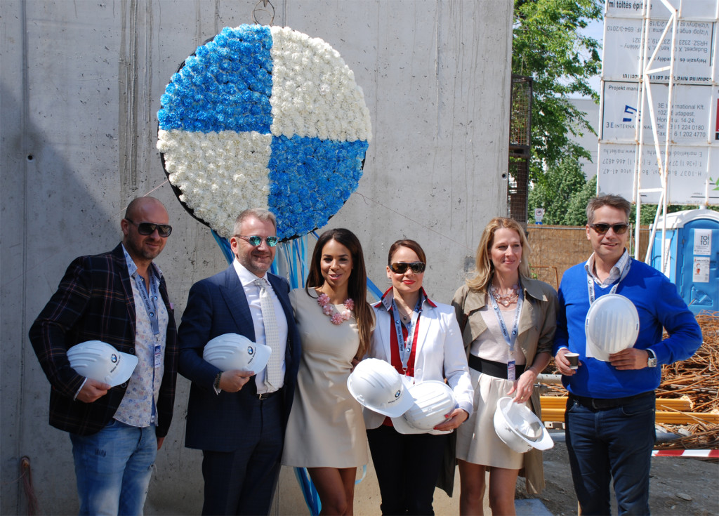 Az épület már elérte a legmagasabb pontját, a BMW márkanagyköveteinek jelenlétében toronydaru húzta fel rá a meseszép bokrétát, innen már könnyű lesz a munkások dolga, őszre el is végzik azt a pár simítást, ami még hátravan.