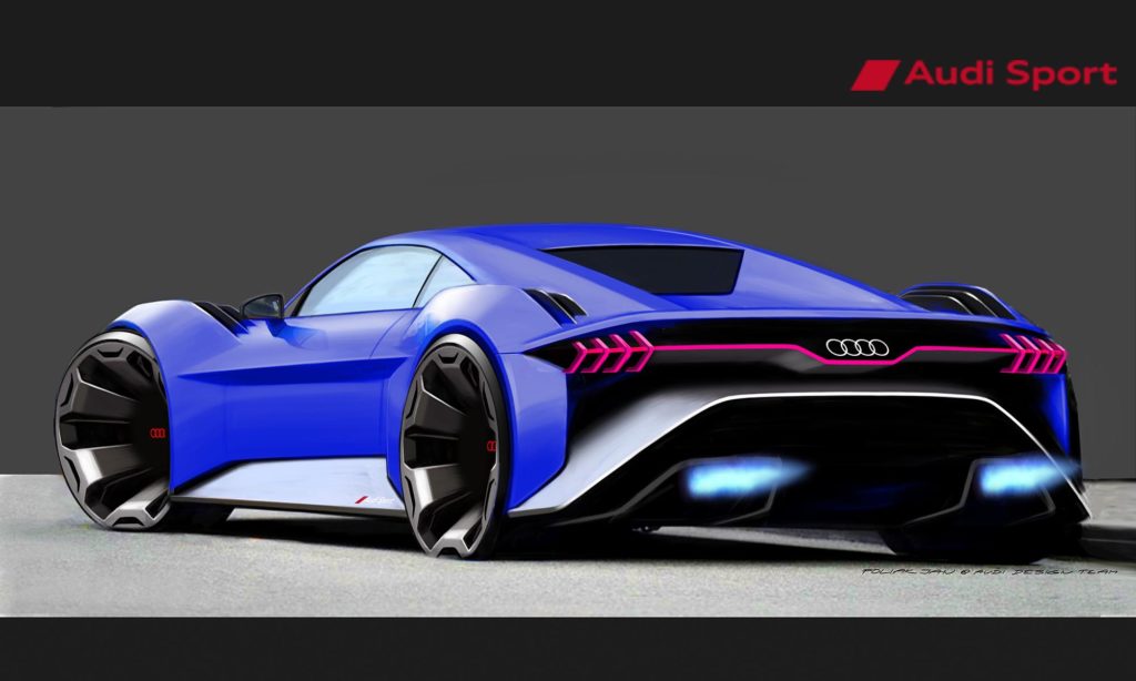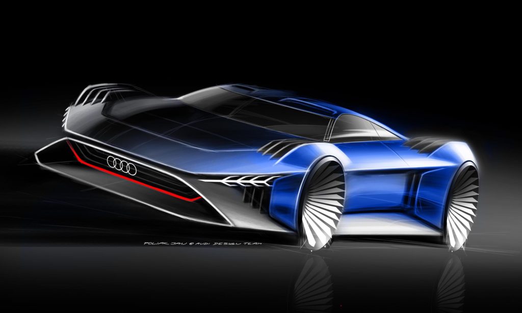 a nemrég megújult R8-ra, és a PB18 e-tron tanulmányautóra. Érdemes jól megnézni, mert az RSQ e-tron is mutathat valamit a márka jövendő szuperautóinak formájából.