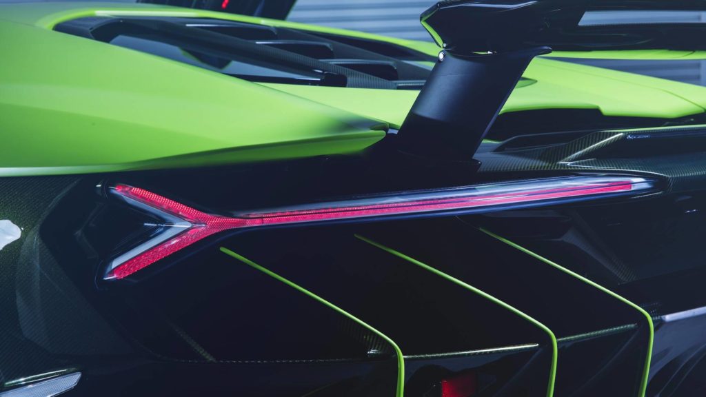 Belül is jócskán találsz az arannyal átszőtt karbonból, ezzel borították a műszerfalat, és még a váltófülek is ebből készültek, minden mást pedig fekete Alcantara borít. Műszaki téren ez a Centenario is ugyanolyan, mint a harminckilenc másik.