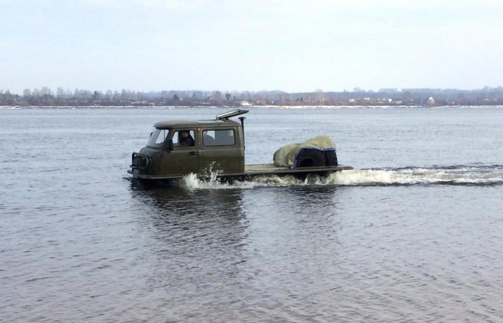 A sima UAZ átmegy árkon-bokron. Ez a vízen és a mocsáron is.