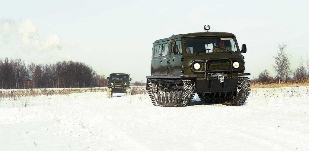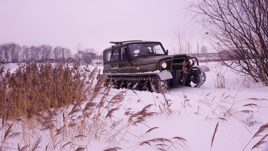 Csak a fülke az UAZ-é, a platós jármű egyedi, a motor egy nyomatékra hangolt dízel. A végsebesség szerény, max. 25 km/h jégen, amúgy pedig 10 km/h, az "amúgy" viszont valószínűleg bármilyen felületet jelent. A videó mindenesetre nagyon meggyőző!