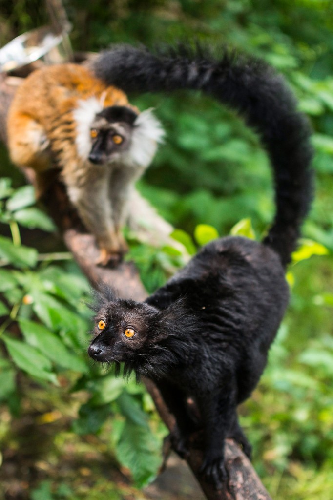 A fekete hím Lengyelországban, a barna nőstény Luxemburgban született, de nem ezért más színűek, a Lemur macacóknál ez így szokás, korábban külön fajnak is hitték őket. Egyébként Észak-Madagaszkáron élnek, de a kép a Nyíregyházi Állatparkban készült, ahová az Európai Fajmegőrzési Program keretében érkeztek.