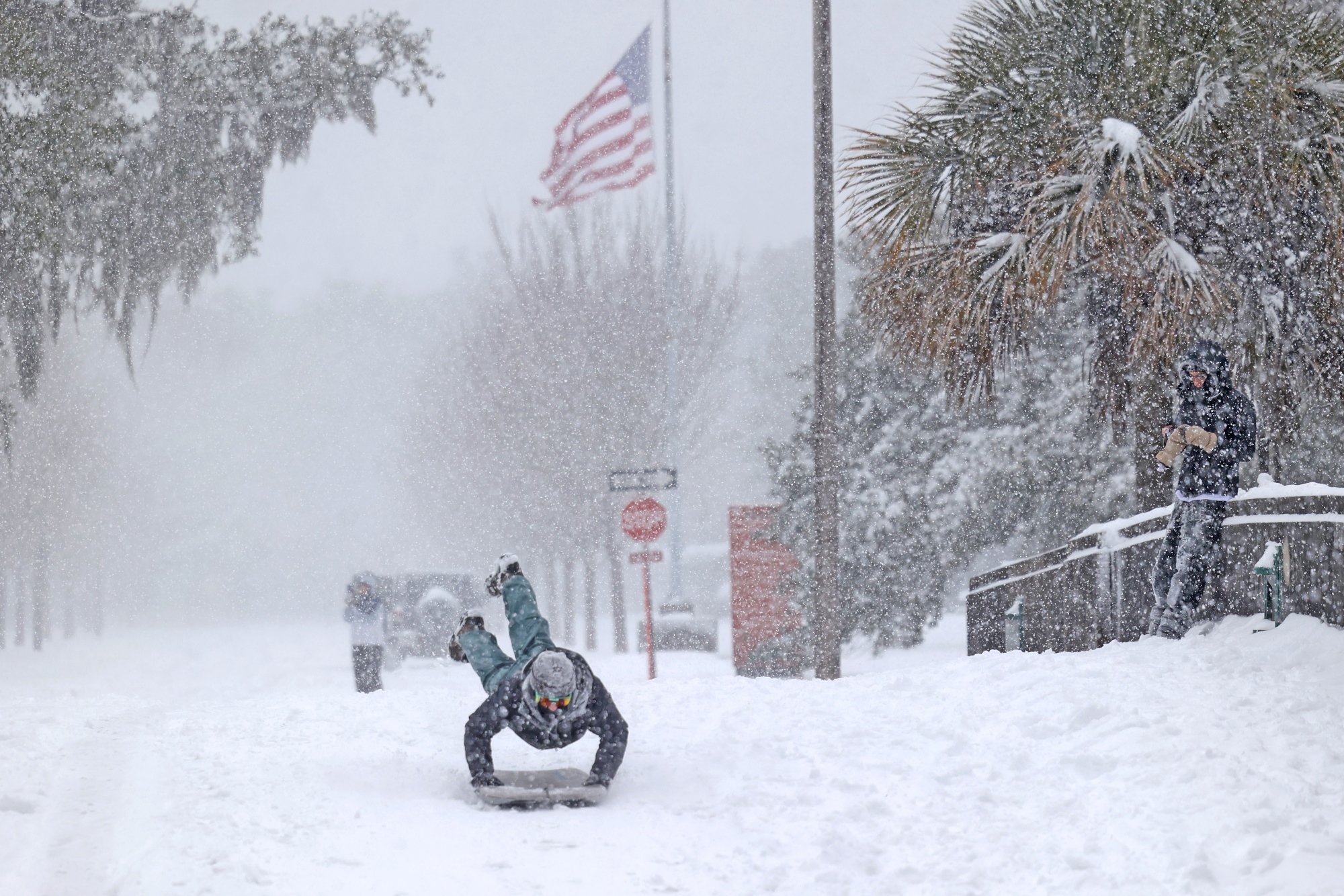A mi életünkben még sosem látott tél csapott le az Egyesült Államok déli államaira, Floridában hóembert építenek, New Orleansban síeltek.