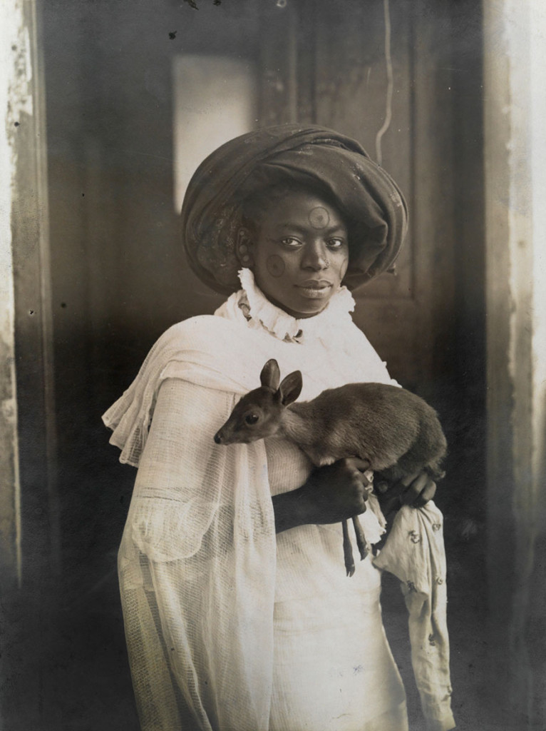 Kenyai nő a kis háziállatával – Mombasa, 1909