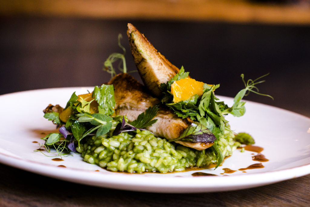 És ez még csak a rizottó, ugyanis a hatalmas adag rizs mellé kerül két szép darab szuvidált, és bőrével sütött supreme csirkemell filé is, amivel tulajdonképpen lapot húztak a 19-re és nyertek. Vagyis mi nyertünk, vendégek.