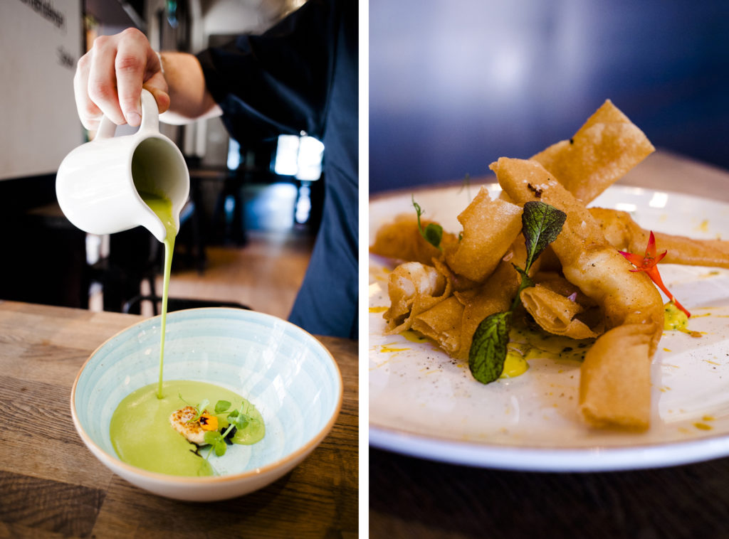 Bajdik Márton szerint az új étlap bisztró jellegű, de szerintünk ez egy nagyon szürke meghatározás: komoly kulináris tűzijátékot lőttek fel, az ételek nagyon ügyesen kitaláltak, sok a csavar és a trükk, és komoly technológiai tudás van mögöttük. Nem véletlen, hogy amikor Bajdikot arról kérdezem, ki hatott rá a legerősebben, a Costes Downownt vezető Tiago Sabarigót nevezte meg.