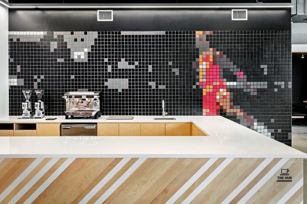 A 14 ezer négyzetéteres iroda Manhattan Midtown nevű kerületében található, van hozzá tetőterasz és egy teljes méretű kosárlabdapálya, amit különösen irigylünk.