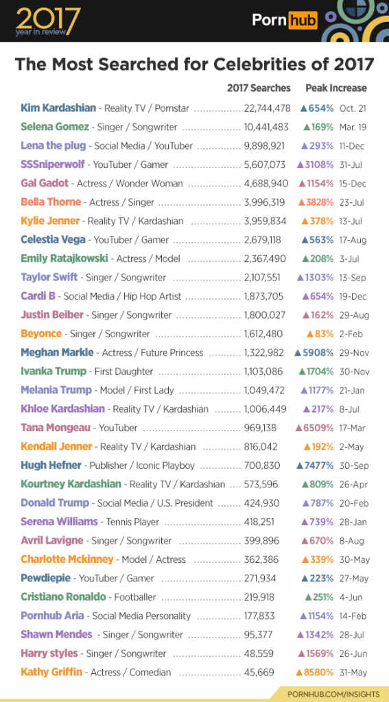 A Pornhub a legnépszerűbb kategóriákat és a leginkább keresett hírességeket is leleplezte.