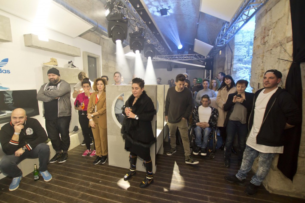 Általában fekete bőr félcipőben kerülgetem a kutyaszart, ilyenkor télen pedig a lábaimra kerül egy pár magasított szárú barna bakancs is. Nyárra mondjuk van egy fehér tornacipőm, egy fekete és egy kék sneakerem, szóval azért valamennyire kompetens vagyok kicks témában. A biztonság kedvéért az adidas sajtóbulijára magammal cipelem a hugit - aki konkrétan stylist volna -, hogy képviseljek én is valami szakmaiságot, a vendégsereg ugyanis láthatóan már az ábécét is divatmagazinok lapozgatása közben tanulta meg.