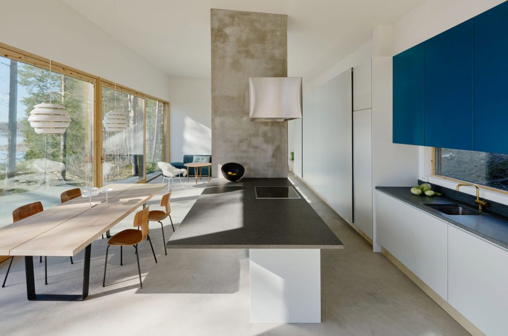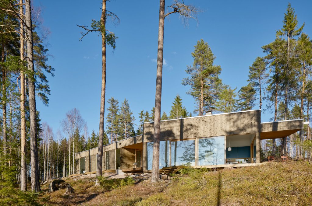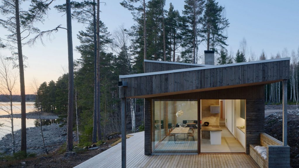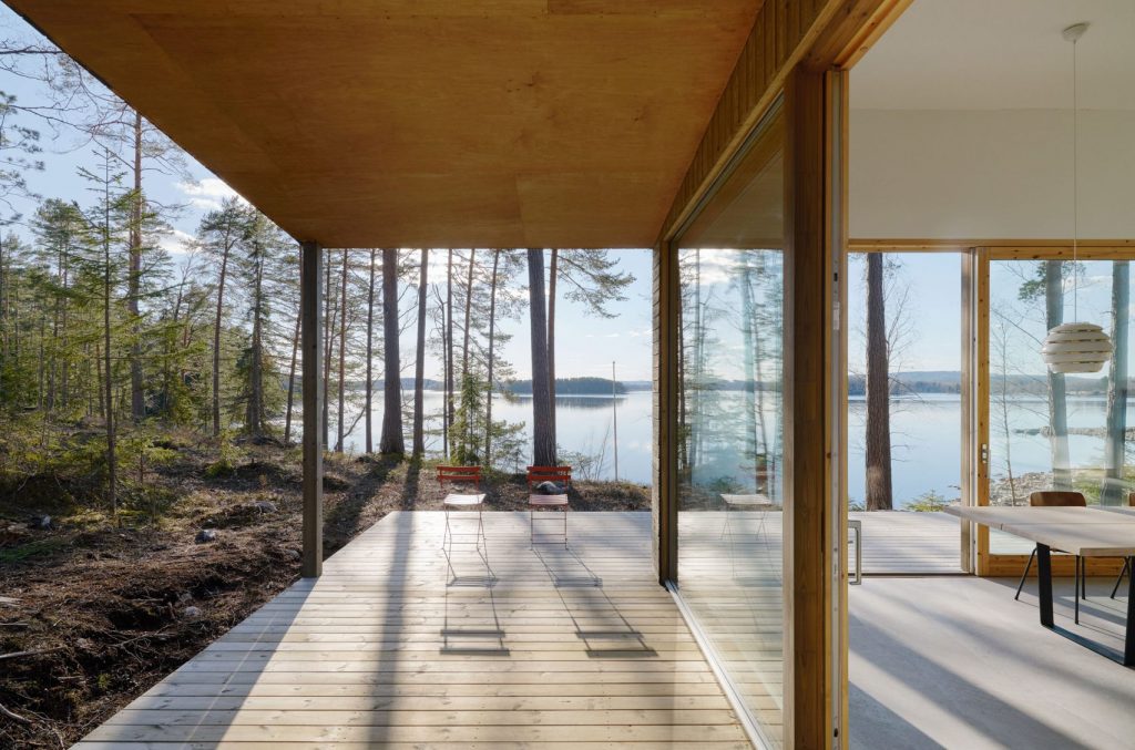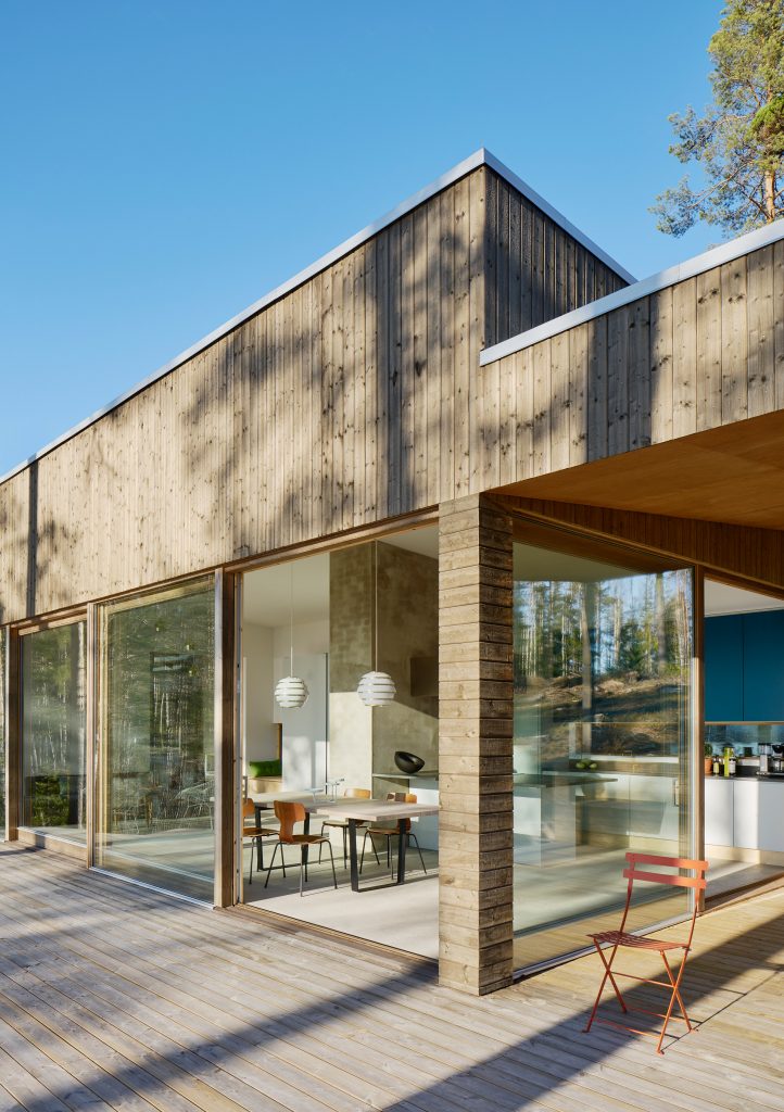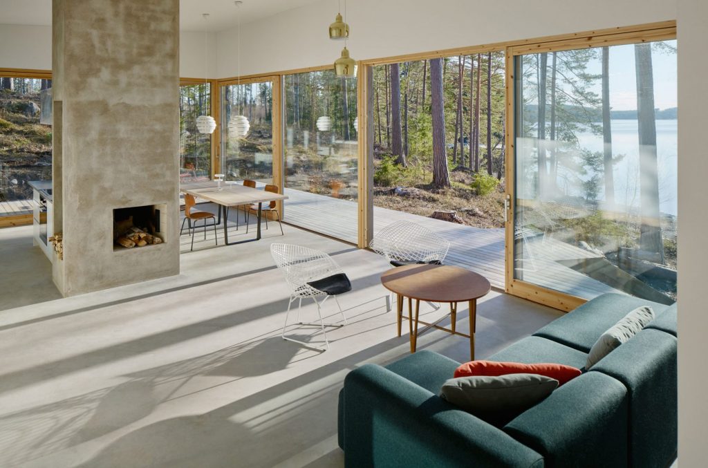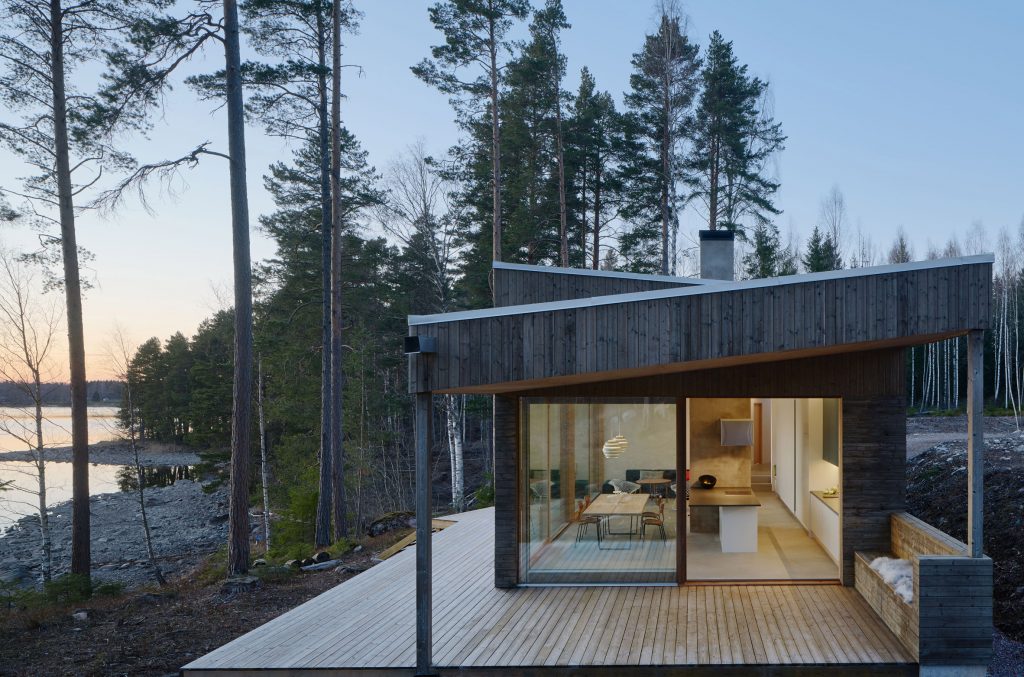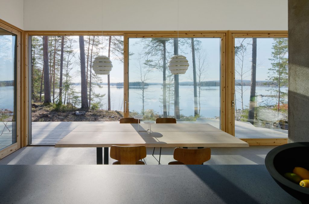 A tóparti, könnyűszerkezetes ház Stockholmtól északra épült egy erdő szélén. A házat direkt úgy alakították ki, hogy egész nap besüssön a nap a különböző helyiségekbe: reggel például a konyhában élvezheti a tulaj a napfényt, este pedig a hálóból láthatja a naplementét. Ami a képek alapján valami egészen káprázatos.