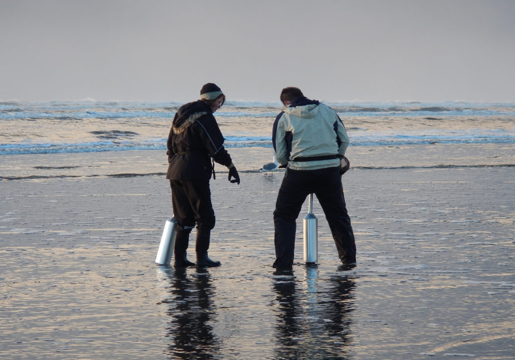 Az engedéllyel rendelkező kagylóvadászok egy speciális cső segítségével ásnak le a homokba, ami lényegesen megkönnyíti a becserkészést.