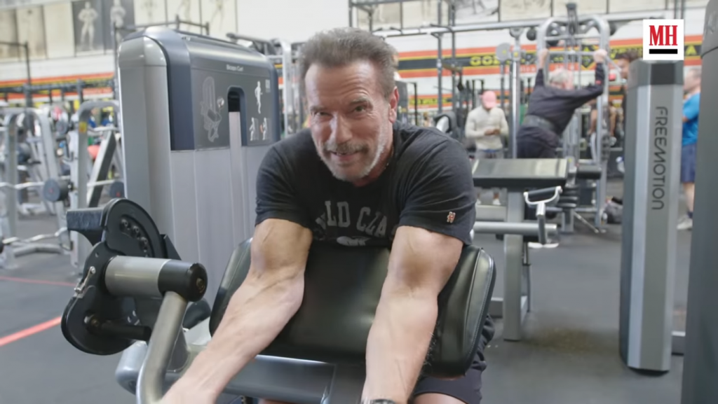 Arnold még 72 évesen is nagyjából minden nap edz, persze a szívműtétje óta nem annyira brutális módon: az emelt súlyok kisebbek, viszont az ismétlések száma nőtt, azonban így is érzi magában a kakaót. Reggel 7 és 7:45 között edz, majd utána minden reggel 45 percig biciklizik, és gyakran még éjszaka is visszamegy edzeni a saját termébe.