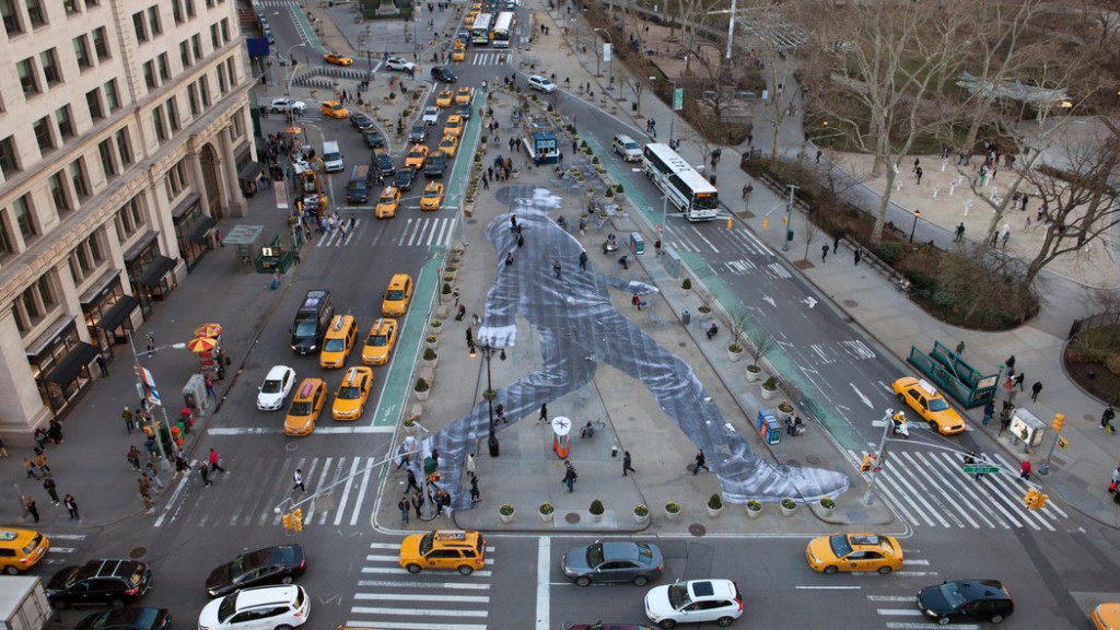 A New York Times magazin kért fel egy francia művészt, hogy dobja fel egy kicsit a szerkesztőség előtti teret. A rajz a Flatiron Buliding, azaz a Vasaló épület előtt található, ide készítette el a francia grafikus és street artista, JR hatalmas sétáló alakját, amely a Walking New York címet kapta.