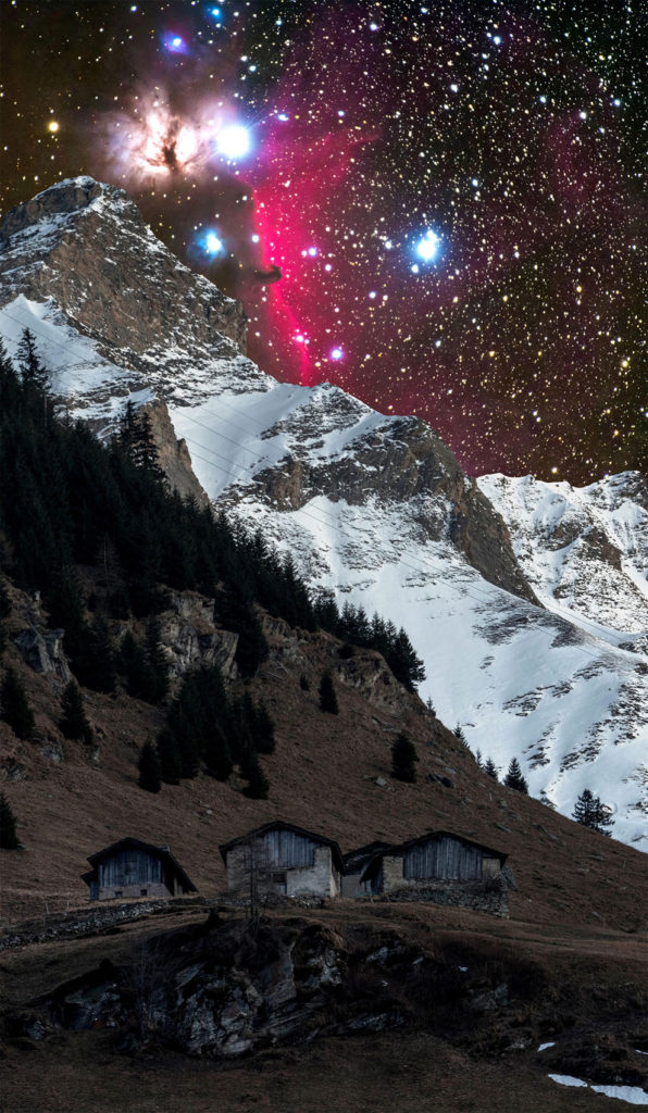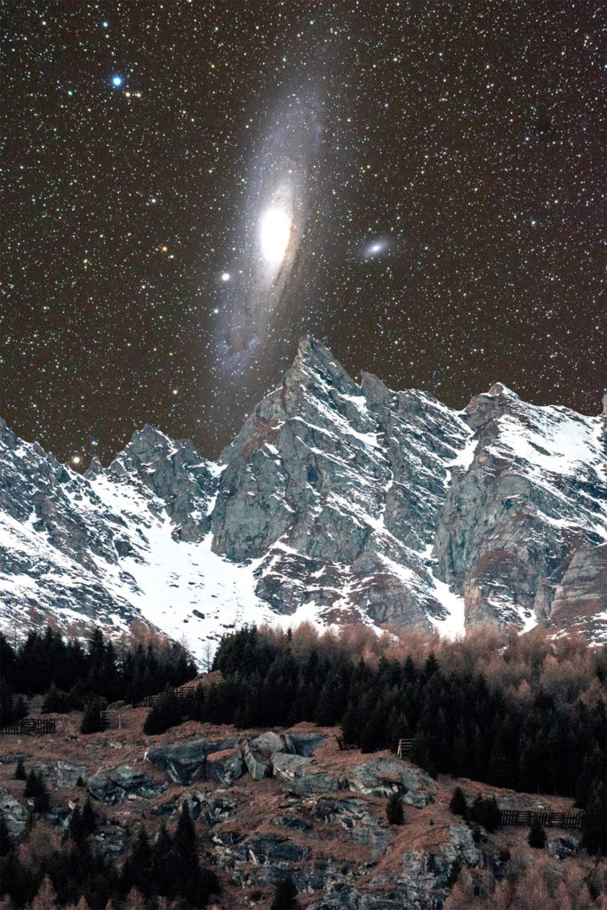 Az Androméda-galaxis, a Tejúthoz legközelebbi nagy galaxis egészen káprázatos képet fest egy eldugott svájci faluból, Valsból nézve.
