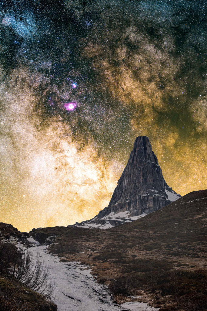 A mesébe illő képeket a festői svájci hegyekben Sandro Casutt készítette, aki egy éven keresztül, minden évszakban megörökítette a csodálatos galaxist.