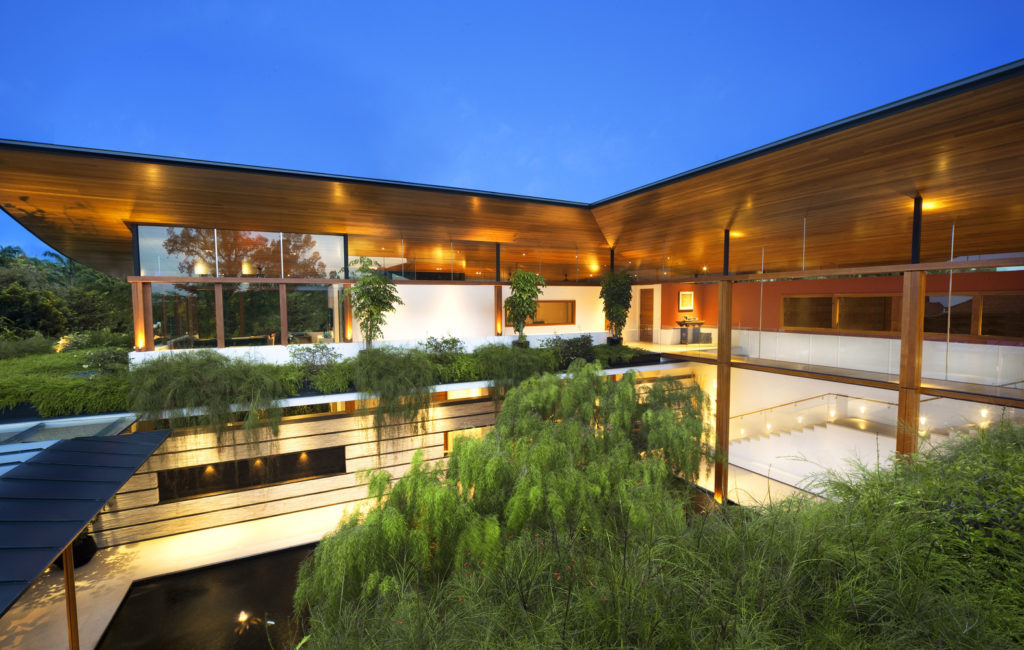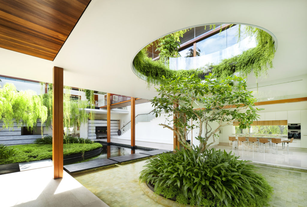 A 891 négyzetméteres házban egy fiatal pár él három gyermekével, mondhatni eléggé paradicsomi környezetben. A trópusi klíma miatt nagyon sok a nyitva hagyott rész, burjánzanak a szebbnél szebb növények, a luxusmedence és a kerti tavacska pedig szintén a hűsölést segíti. Félelmetesen szép terek jönnek, szerencsések a tulajok nagyon.