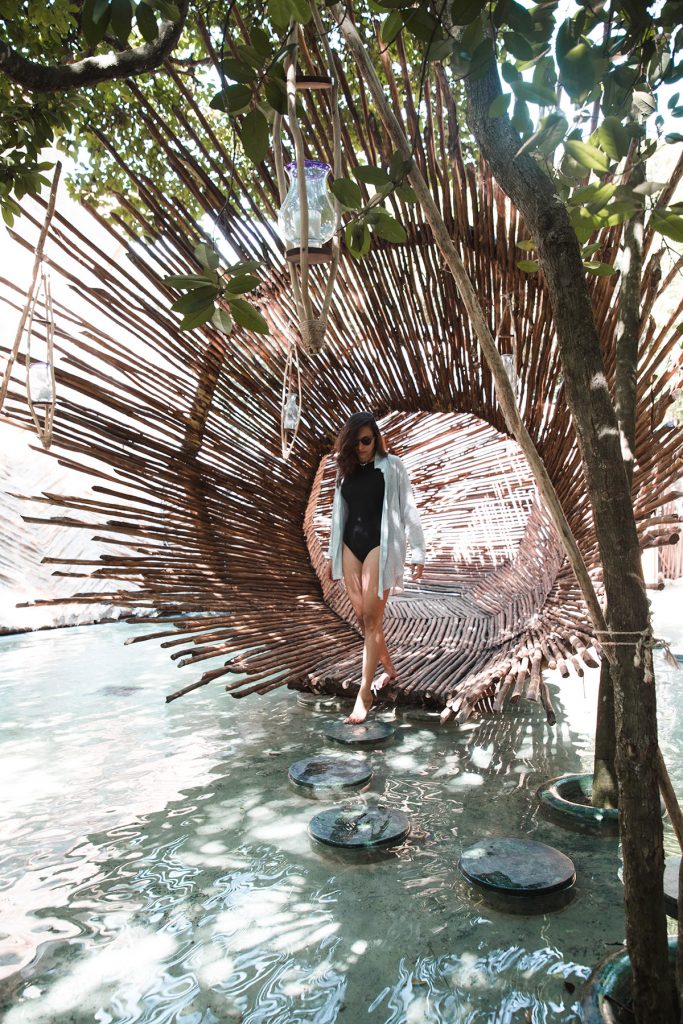 A hely annyira természetközpontú, amennyire csak egy szálloda az lehet. A bungalók között indákból épített függőhidakon és a sűrű növényzetbe vágott kis folyosókon lehet közlekedni. Mivel a szálloda üzemeltetői az ember és a víz kapcsolatát külön ki akarták hangsúlyozni, amikor megépítették ezt a helyet, ezért kis patakmedrekbe terelték a tengervizet, ami így keresztülcsobog az egész létesítményen.
