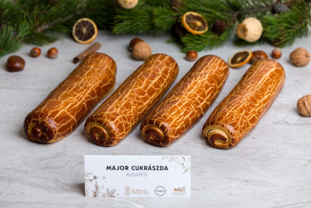 Az Év Ínyenc Bejglije díj nyertese: Sütőtökvarázs (darált pirított tökmaggal, gyömbérrel, narancshéjjal és fahéjjal ízesített sütőtöktöltelékkel készült bejglikülönlegesség) – Kimberger Lili Ágnes – Mák Kézműves Cukrászda (Piliscsaba)