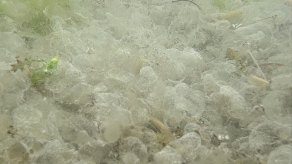 a több centiméteres kocsonyás képletek az árvaszúnyog fajok szaporodásához köthető tojáscsomók, a következő árvaszúnyog-generáció előhírnökei.