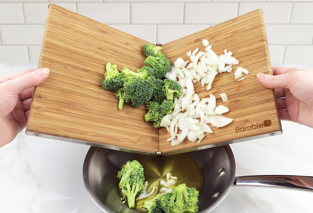 Így anélkül lehet beleszórni az aprítékot a fazékba, hogy a fele mellémenjen, összezúzható a fokhagyma, kisebb helyen elfér, kis és nagyobb vágódeszka egyszerre, a bambusz és a rozsdamentes acél pedig mellékesen bármilyen konyha dísze lehet.
