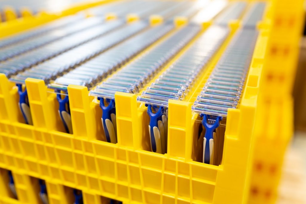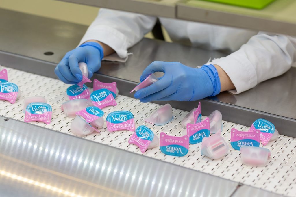 Már az a kis pengéket tartó műanyag foglalat is rengeteg apró részletből áll, a női borotvákat pedig erősen megbolondítja a rajtuk heverő szappancsík, ami miatt folyamatosan steril környezetnek, meghatározott páratartalomnak és légnyomásnak kell uralkodnia a csarnokban. Épp ezért a női termékeket másik csarnokban is gyártják, hogy könnyebb legyen megteremteni a szükséges feltételeket.