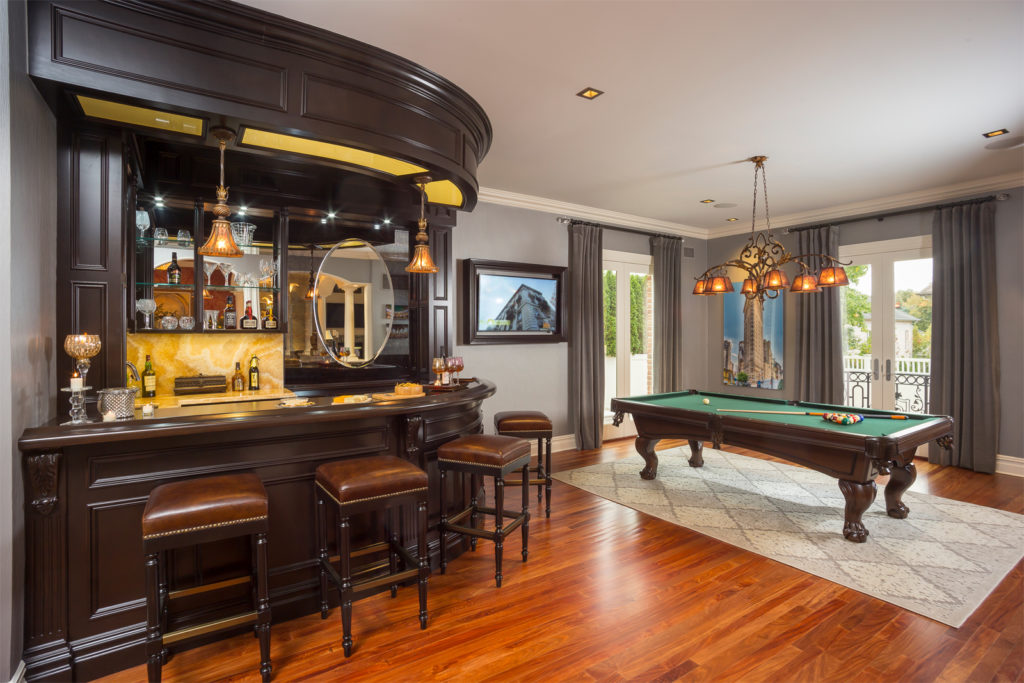 Ha pedig már klasszikus biliárdszoba, és álmodozás, akkor mi feltétlenül mellé képzelünk egy kártyaasztalt, és egy bárpultot. Nem simán egy pultot, mint az amerikai konyháknál szokás, hanem rendes bárpultot, pohártartóval, sörcsappal, borhűtővel… Egy ilyen biliárdszoba már igazán kellene, ugye?