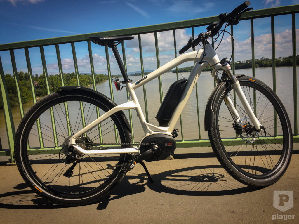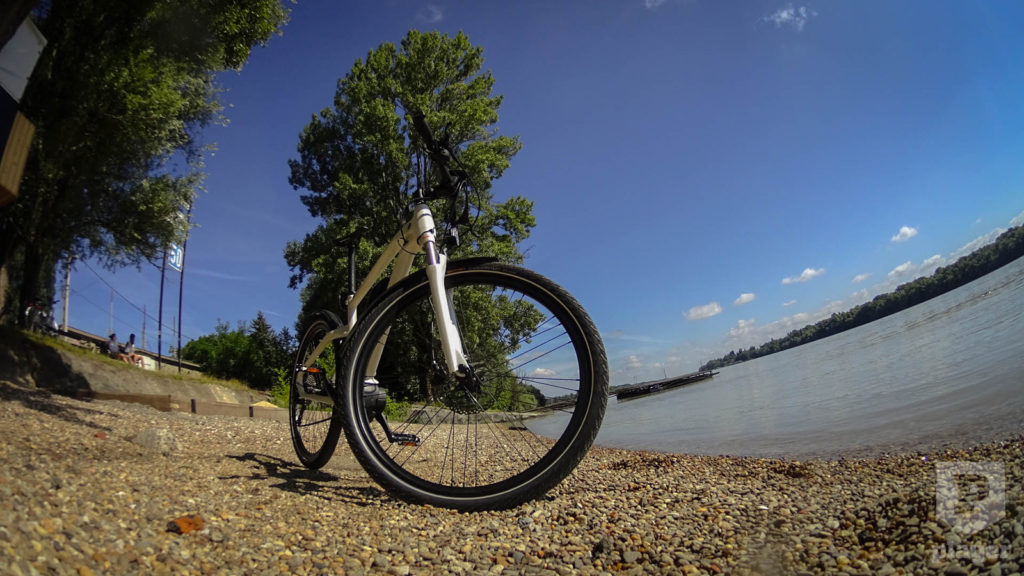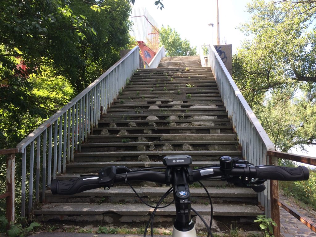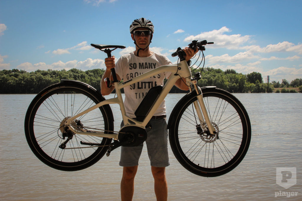 A bicaj vezérlőkomputere másodpercenként ezerszer dolgozza fel a három érzékelőjéből érkező impulzusokat, hogy eldöntse, 0 és 255 százalék között mennyivel járuljon hozzá a tekeréshez. Te csak suhansz, nem kell az emelkedő közepén visszaváltani, amikor már éppen kifogysz a szuszból. Sosem jutottam még el olyan kipihent állapotban a Római-partra, mint ezzel a bicajjal. Egyetlen szakaszon kerültem komolyabb feladat elé: a Népsziget gyalogos hídjára csak lépcső vezet fel. Ott megküzdöttem a 22 kilós bicikli felcipelésével.