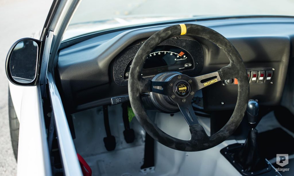 A japán szívű BMW-ből nem hiányzik az önzáró differenciál, az állítható futómű és az E36-os M3-ból származó fékrendszer sem. Azt pedig már ránézésre lehet tudni, hogy nem egy átlagos 318i-ről van szó, a kiszélesített sárvédők alatt 17 colos Rotiform kerekek feszítenek,