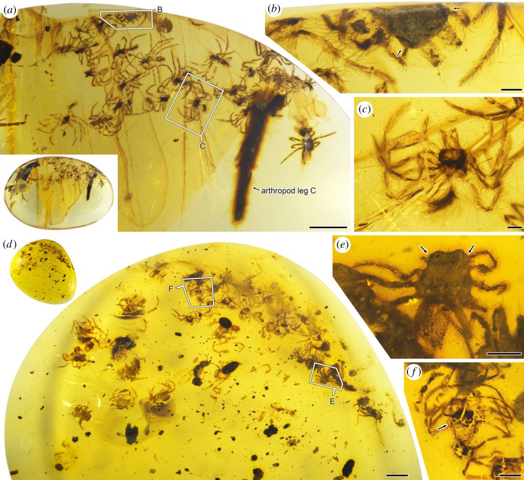 Borostyánba ragadva maradt fenn egy már kihalt pókcsalád egy nőstény példánya utódaival. A kihalt Lagonomegopidák családjába tartozó, fosszilizálódott kifejlett példányra egy burmai borostyánban bukkantak.