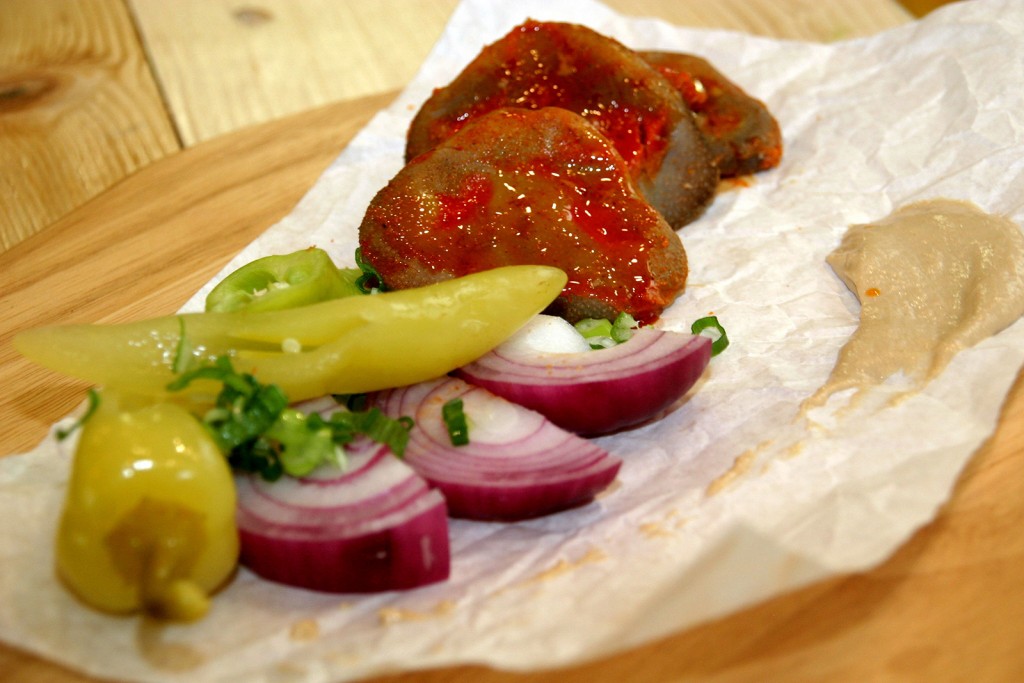 Van még malacfül, abált disznóorr és szalontüdő. A krumplisaláta Ausztriából jön, nem tudtuk másképp megoldani. A disznófül mellé a tartár receptje egy elavult, retró szar, cukorral, tejföllel, fehér borral, ahogyan gyerekkoromban ettem. Nekem bejön!
