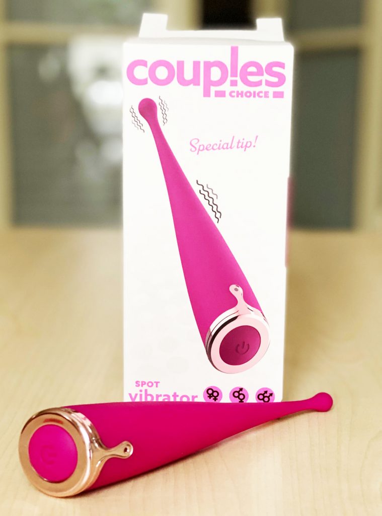 A Couple's Choice egy felfelé keskenyedő, gombszerű fejben végződő, bársonyos pink izgató, hossza egy kicsit nagyobb mint egy tenyér – viszont ne tévesszen meg a szolid méret és a rózsaszínség, egy elképesztő erőt rejtő vibrátorról van szó. Más izgatókkal ellentétben ezt a vibrátort rém egyszerű vezérelni: egyetlen óriási gombbal lehet be- és kikapcsolni, valamint ugyanezzel a gombbal lehet a tíz különböző rezgésmód között is mozogni.