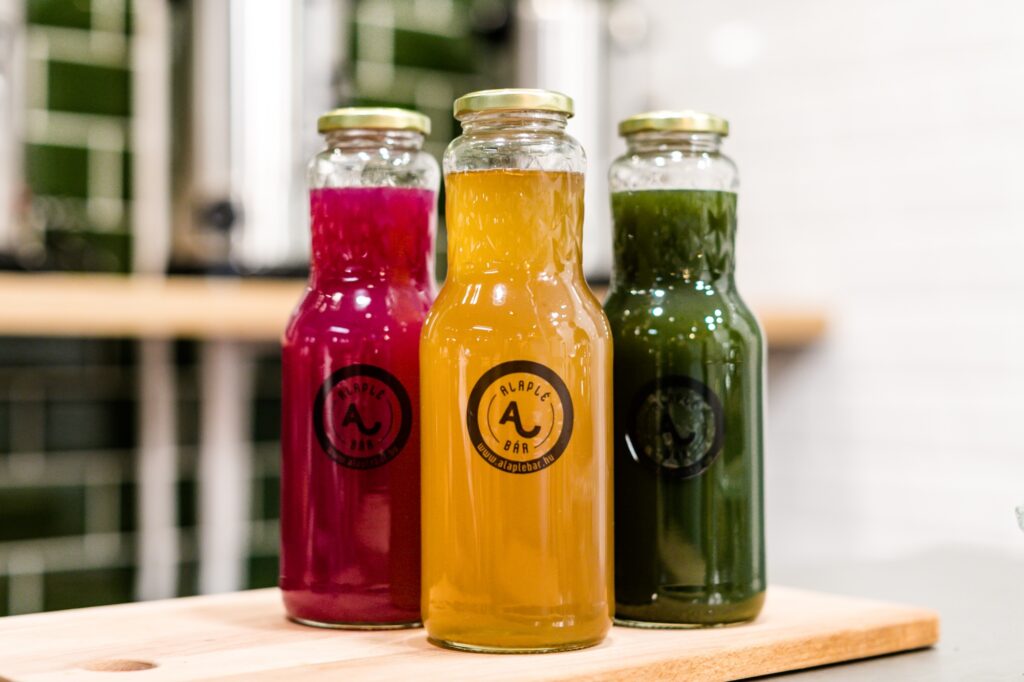 Az Alaplé bár régóta rajta volt a radarunkon, eddig mégis valahogy elkerültük egymást. Az újév viszont meghozta az áttörést: a Király Éva dietetikus alapította bár nemrég megnyitotta a harmadik egységét, a Lövőház utca és a Nagymező utca után a Fehérvári úti piac alsó szintjén, az Allee felé eső részen.