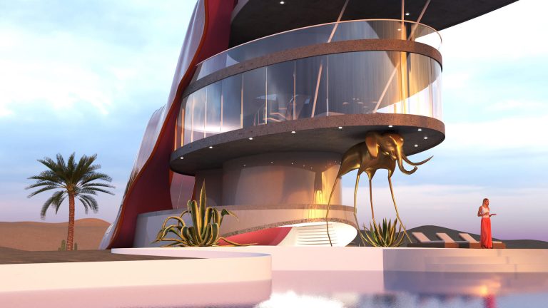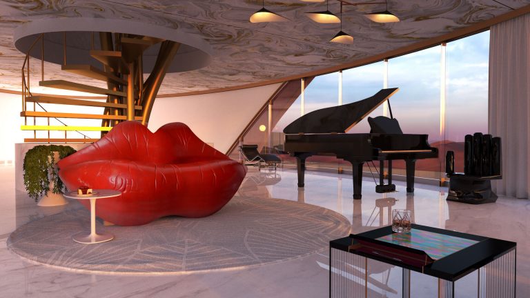 Még egy kis mini koncepció is készült hozzá, miszerint a legfelső szintre kerültek a privát terek, míg az első emeletre és a földszintre pedig a nappali, illetve az étkező. Dalí 1989-ben halt meg, így a számítógépes grafika ilyen szintjével nem találkozhatott, de abban biztosak vagyunk, hogy ha ma élne, kipróbálna néhány grafikai eszközt, meg mondjuk a Midjourney-t.