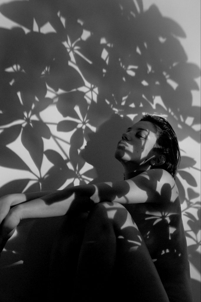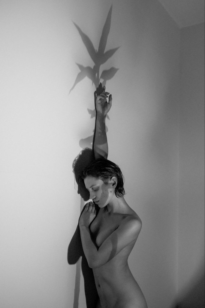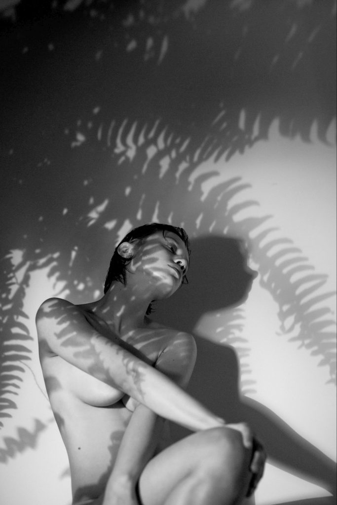 Nem az a napozós típus, még a szobában is a növények árnyába húzódik.