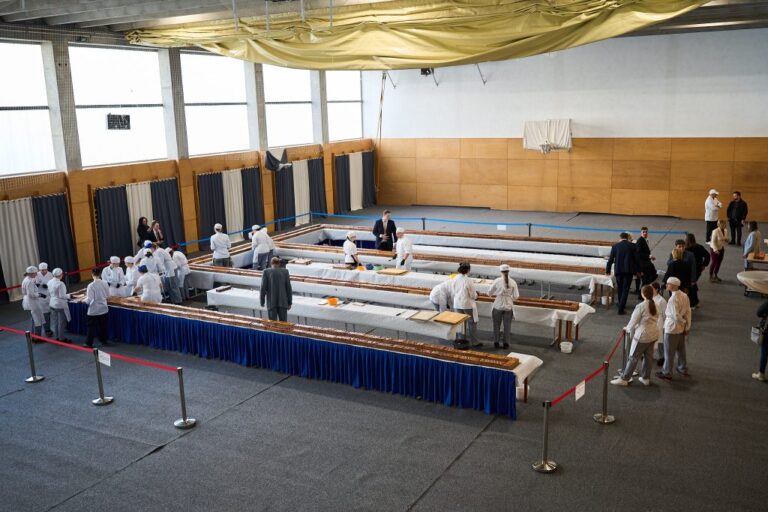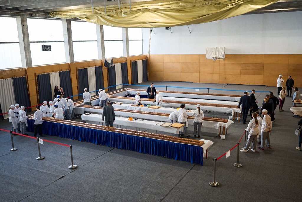 A 112 méteres torta 4500 szeletet jelent, összesen 20 cukrász és 150 tanuló dolgozott az elkészítésén, 3500 db tojást, 50 kg lisztet, 60 kg cukrot, 62,5 kg vajat, 7,5 kg kakaóvajat, 62,5 kg étcsokoládét és 7,5 kg kakaóport használtak fel.