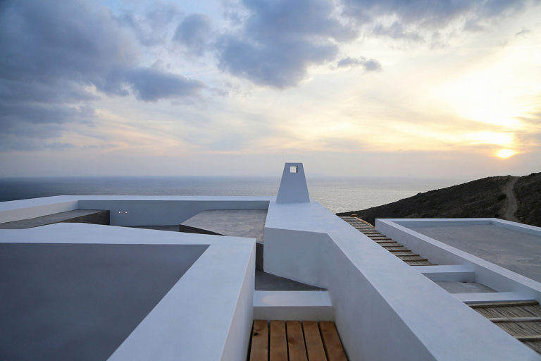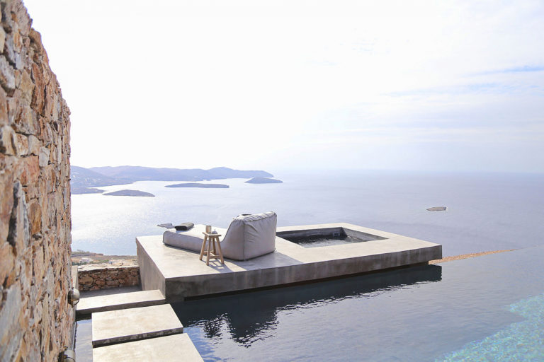 Szírosz szigetén van egy lejtős domb, ahonnan tökéletes kilátás nyílik a görög tengerparti tájra és az Égei-tengerre. Ezen a dombon épült meg ez a kis luxusnyaraló, ami egyszerűen eszelős.