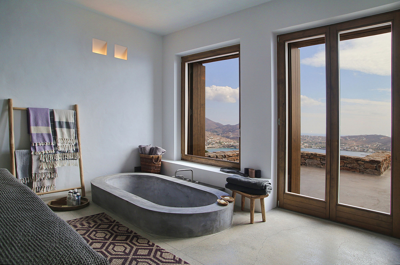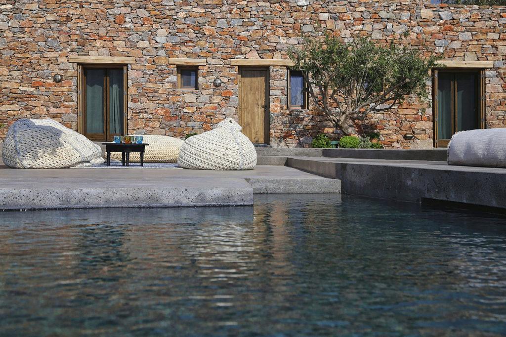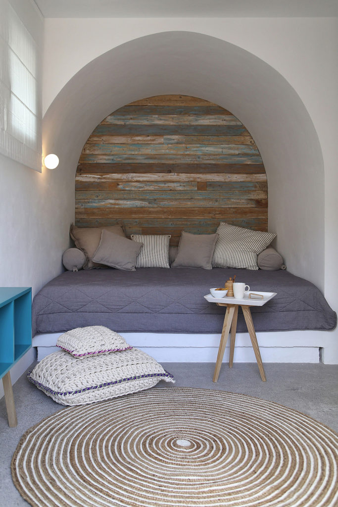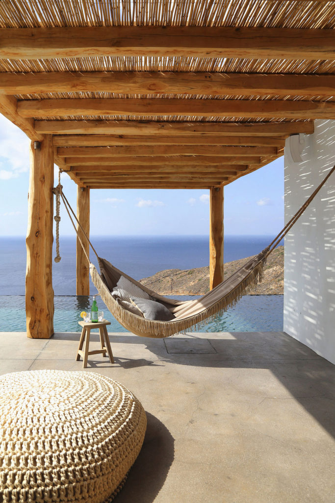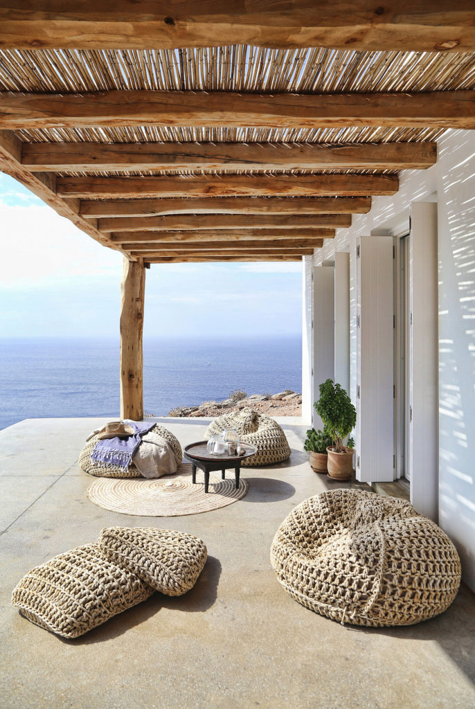 A fa, kő és a beton ízlésesen megjelenik belül és kívül egyaránt, így a nyaraló a görög népi építészet és a modern design kifinomult keverékét képviseli.