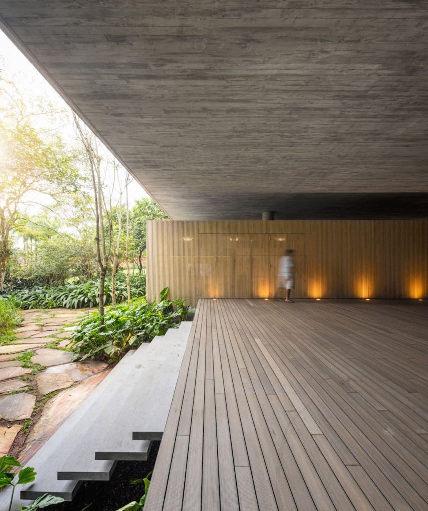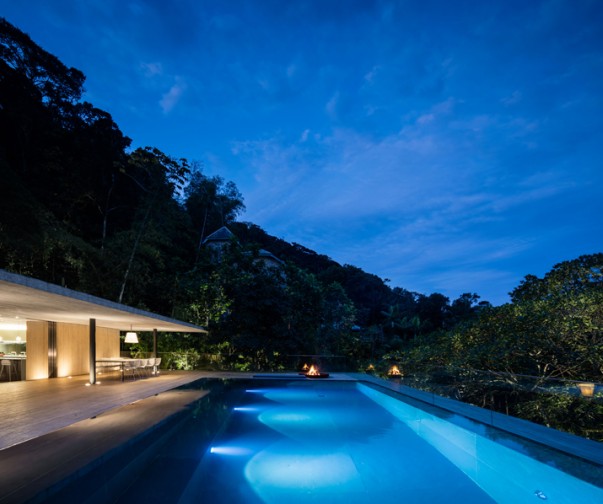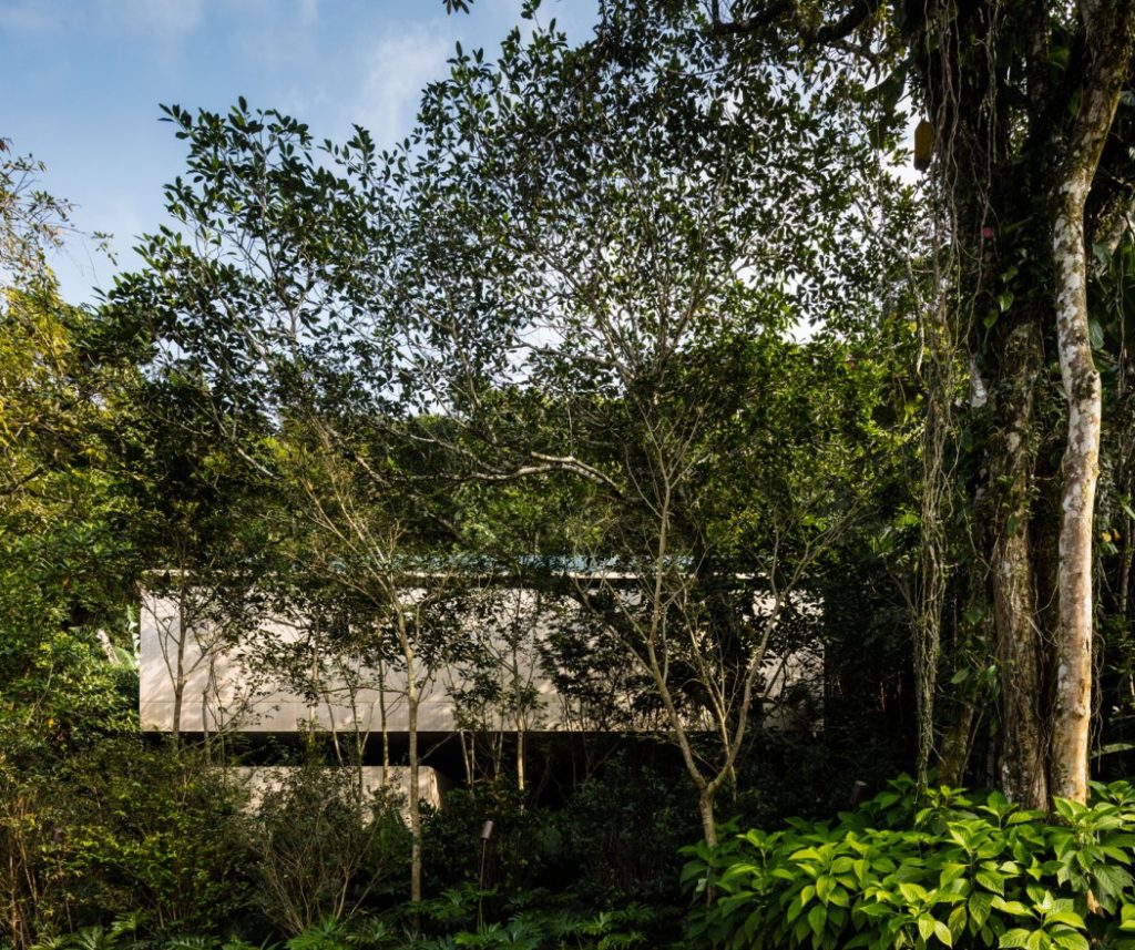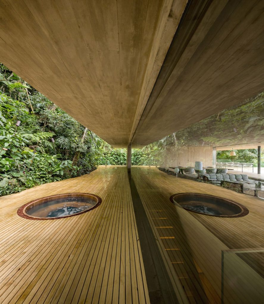 A Casa na Mata névre keresztelt ház egy trópusi esőerdő szélén helyezkedik el Brazíliában. A fából, betonból és természetes építőkövekből kivitelezett csodaépületet teljesen körülöleli a dzsungel – és ha ez nem lenne elég, mindezt kültéri jacuzziból, feszített víztükrű medencéből vagy szaunából is élvezhetjük, de még egy tábortüzet is körülülhetünk a hatalmas teraszok egyikén.
